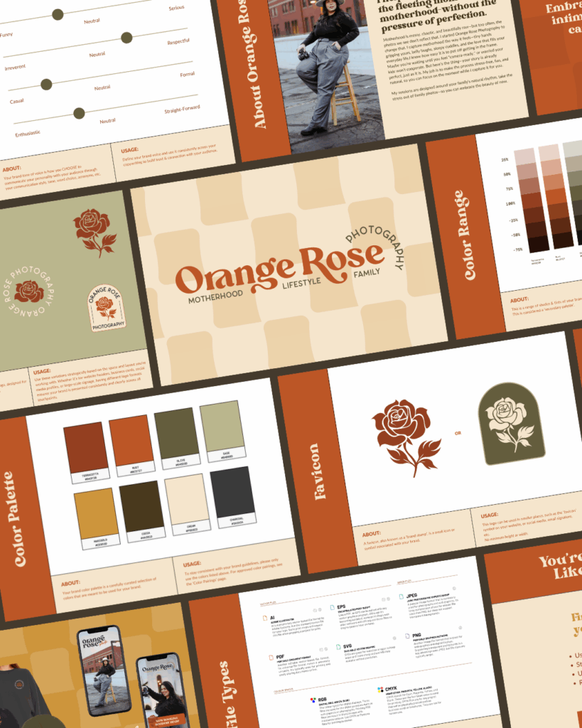 When Morgan came to us, she was ready for a brand that felt like her. As the creative behind Orange Rose Photography, Morgan captures raw, emotive family moments—photos filled with connection, laughter, and perfectly imperfect memories. Yet, her online presence didn’t reflect that same authenticity. Inconsistencies in her branding and client experience left her craving a cohesive, professional identity that felt cozy, natural, and warm—just like her work.